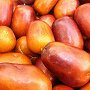 Шкірка тонка, блискуча, червоно-коричнева, іноді з легким бронзовим відтінком. М’якоть щільна, соковита, дуже солодка — за смаком нагадує фінік.