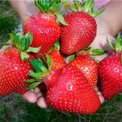 Данный сорт садовой земляники относится к ранне-средним сортам. Сбор урожая с первых чисел июня. Куст с мощным листовым аппаратом ярко-зелёной окраски, раскидистый. Цветоносы крепкие, высокие. Ягоды конусообразные, крупные, средней массой около 40 - 50 г и крупнее. Поверхность блестящая, ярко-красной окраски. Мякоть плотная, светло-красная, высоких вкусовых качеств, очень ароматная, с земляничным привкусом. Урожайность высокая, до 1000 гр с куста, и более. Плодоношение длительное, растянуто на 3 недели.