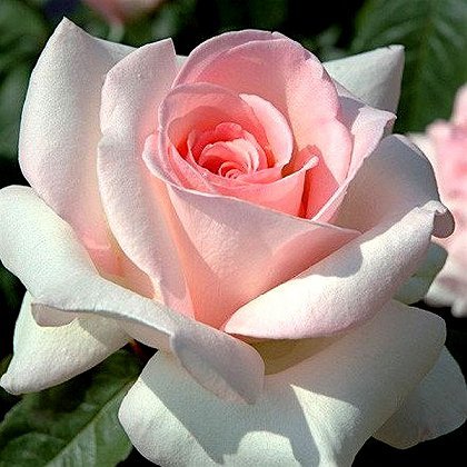 Это имя по договоренности с компанией Meilland International сорт получил в России и Украине. Роза удивительно красивая, с огромными 11-13 см в диаметре, махровыми (до 80 лепестков) цветами, с лепестками нежного кремового–розового цвета с более яркой серединкой.