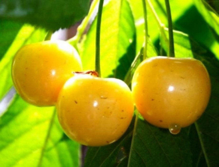Плоды массой 6—8 г, округло-сердцевидные. Кожица блестящая, тонкая, плотная, светло-жёлтая. Мякоть плотная, кремовая, с бесцветным соком, сладкая, приятного вкуса (4,2-4.5 бал.). Косточка маленькая.