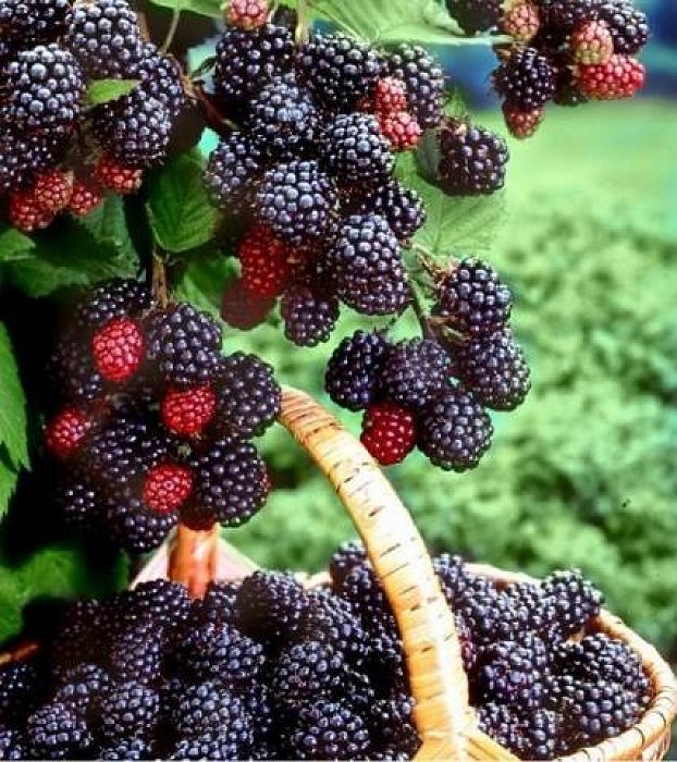 Ежемалина Кумберленд внешне очень похожа на ягоды ежевики. Отличие составляет лишь размер ягод, который меньше ежевики, и легкое снятие с плодоножки. Ягоды крупные, массой 3-5 грамм, вытянутой формы, черно-фиолетового цвета с сизым налетом между костянками.