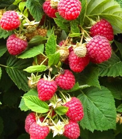 Глен Ампл – один из самых распространенных сортов малины в Европе. Побеги жёсткие, практически без колючек.