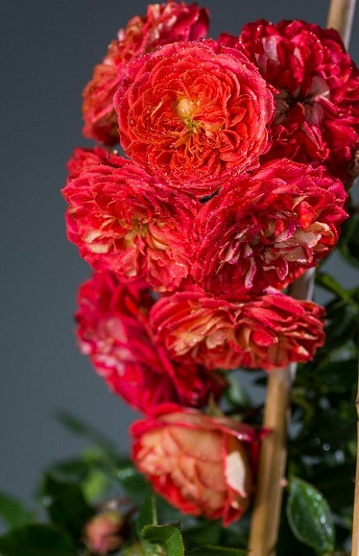 Очень красочная и довольно компактно растущая роза из серии "Starlet". Цветы сочного оранжевого цвета с желтым реверсом, напоминающими средиземноморские солнечные террасы. Цветки диаметром 5-6 см, густомахровые, розетковидные и очень прочные. Этот сорт наращивает очень сильные базальные побеги, быстро образуя большой куст высотой 150-200 см и обеспечивая непрерывное цветение в течение лета.