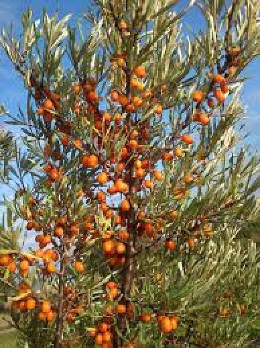 Цветки невзрачные, жёлтые, цветут III-IV. К достоинствам можно отнести красивую, серебристую окраску листьев в вегетативный период, а осенью жёлтый, листья ланцетные, заострённые. Побеги не толстые с колючками.