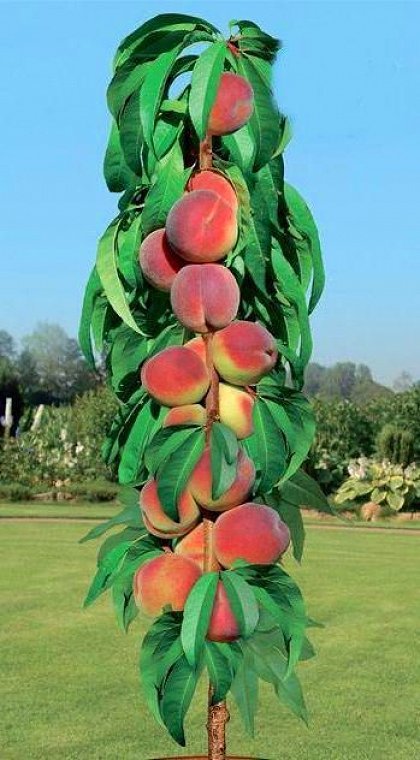 Одним из ярких представителей колоновидных персиков является саженец сорта Медовый. Это компактный, достигающий всего двух метров в высоту персик будет приносить Вам достаточно богатые урожаи, не занимая большую площадь под возделывание (диаметр кроны достигает всего 1,2 метра).