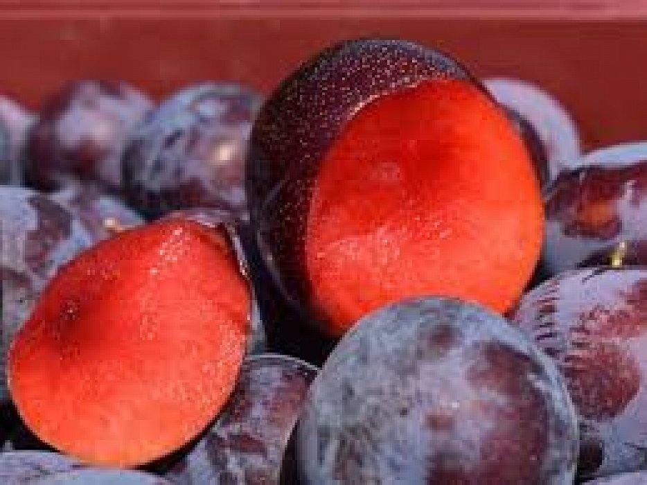 Плоды крупные, темно-красно-фиолетовые, диаметром 50-55 мм. Мякоть рубиново-красная, плотная и очень сладкая, обладает прекрасными товарными качествами. Дегустационная оценка составляет 4,7-4,8 балла, что делает этот сорт десертным.