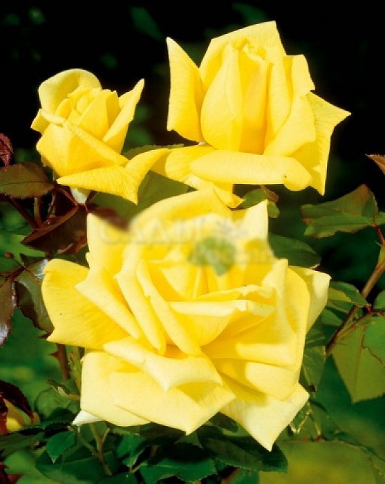 Одна из лучших жёлтых роз, благословлённая солнцем. Цветки крупные, 11—12 см в диаметре, красивой формы, яркие, шафраново-жёлтые, хороши на всех стадиях роспуска. Полностью раскрывшиеся цветки сохраняют насыщенную окраску и отсвечивают золотыми бликами между лепестками.
