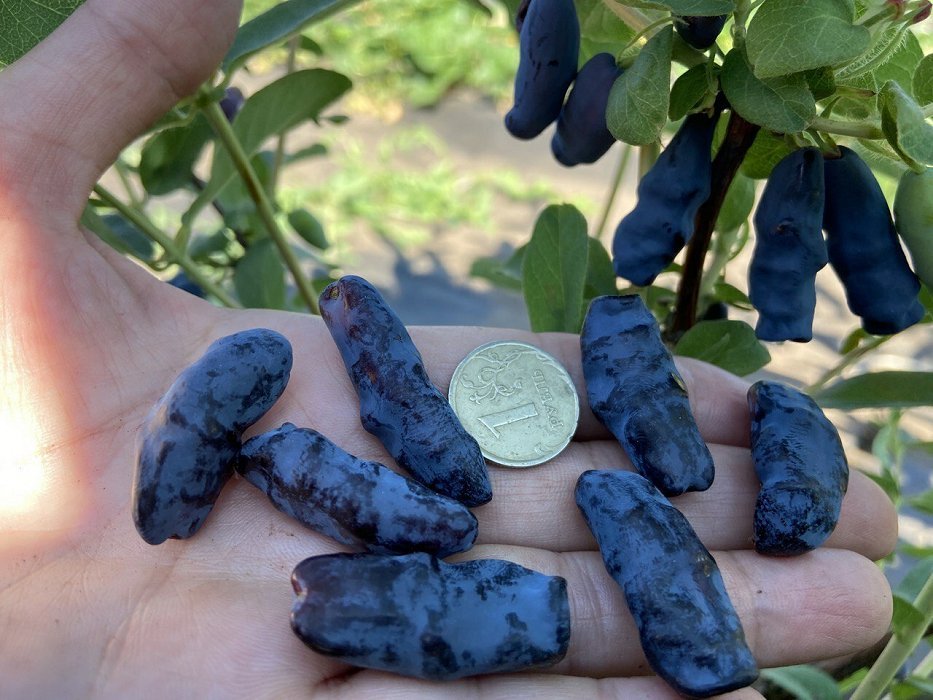 Ягоди: Дуже великі, довгасті, темно-сині або синьо-чорні, з характерним восковим нальотом. Вага однієї ягоди може досягати 3-5 грамів.